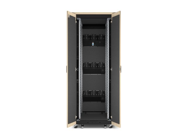 When there's no space, budget, or time to build a traditional server closet, NetShelter Soundproof Racks offers a cost-effective alternative. Twice the dynamic strength, built in PDU, cable management, and whisper-quiet fans makes it easy to deploy and perfect for denser IT gear.