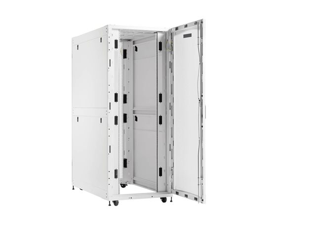 Eaton SmartRack 42U ekstra dybt og ekstra bredt rackkabinet til tungt udstyr er designet til at imødekomme kravene fra AI-servere og tilbyder en pålidelig løsning til effektiv opbevaring af udstyr. Dette rackkabinet er fremstillet af holdbart stål og har et ekstra dybt og ekstra bredt design, der sikrer rigelig plads til dine servere, samtidig med at den strukturelle integritet bevares. Dette kabinet kan aflåses for sikkerhedens skyld og er udstyret med tunge hjul for mobilitet. Det kan bære en vægt på op til 2268 kg og er velegnet til forskellige tunge anvendelser.