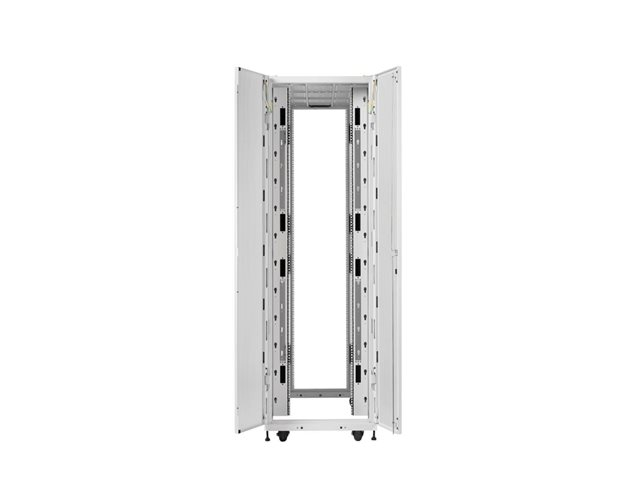 Eaton SmartRack 48U ekstra dybt standardbredt rackkabinet til tungt udstyr er konstrueret med henblik på holdbarhed og funktionalitet. Dette kabinet er designet til AI-servere og har et ekstra dybt og robust design, der sikrer, at dit værdifulde udstyr opbevares sikkert og organiseret. Kabinettet er udstyret med fire lodrette monteringsskinner og har en vægtgrænse på 2268 kg, hvilket gør det velegnet til forskellige serverkonfigurationer.