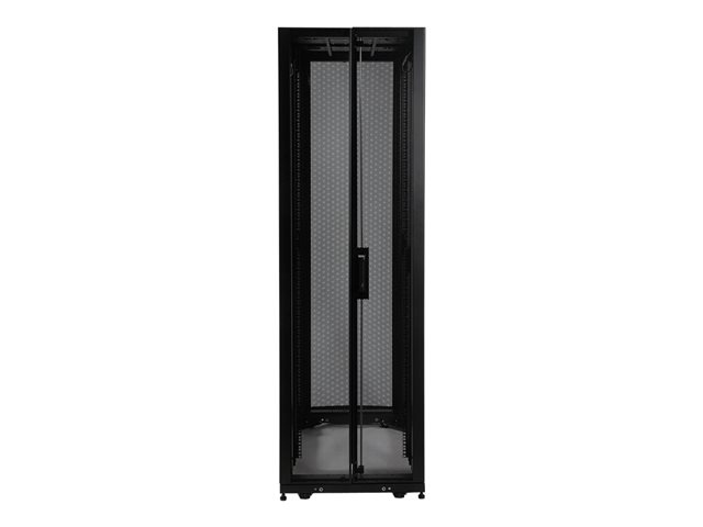 Eaton Tripp Lite Series 42U Rack Enclosure Server Cabinet er designet til at give en sikker og effektiv opbevaringsløsning til forskelligt udstyr. Skabet har en låsbar for- og bagdør, som sikrer, at værdifulde komponenter er beskyttet mod uautoriseret adgang. Med en robust vægtgrænse på 1363 kg og en standard rackstørrelse på 19 tommer er det i stand til at rumme et væld af enheder, hvilket gør det ideelt til datacentre eller serverrum. Skabet er konstrueret med en holdbar pulverlakeret finish, der giver et raffineret udseende og en lang levetid. Det medfølgende monteringssæt forenkler installationen og giver mulighed for hurtig opsætning. Mobilitet er en funktion med indbyggede hjul, der gør det nemt at flytte rundt i ethvert arbejdsområde. Med RoHS-overensstemmelse opfylder dette serverskab strenge miljøstandarder, hvilket gør det til et fornuftigt valg til moderne teknologiske behov.