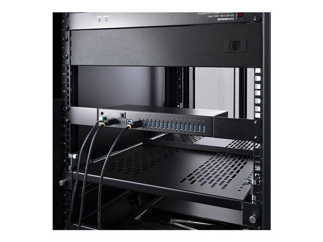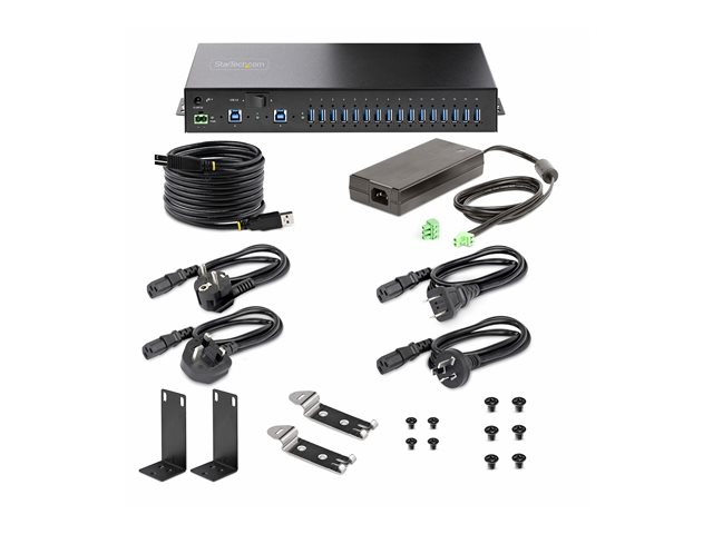 StarTech.com 16-Port Industrial USB 5Gbps Hub with Power Adapter, Metal Enclosure, Mountable, ESD Protection, Terminal Block Power, USB Charging, Dual-Host Switch - TAA - Hub - 16 x USB 3.2 Gen 1 - desktop, monterbar på stativ, væg-monterbar, DIN monterbar på skinne - TAA-kompatibel
