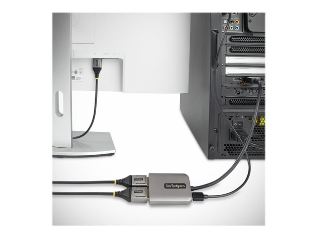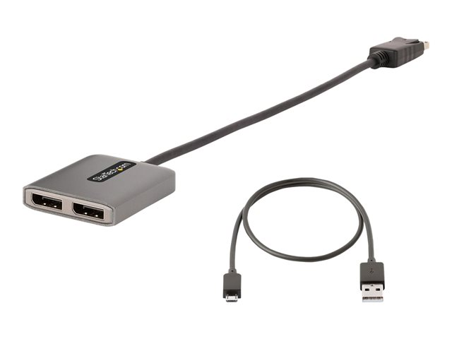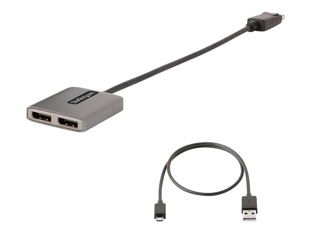 StarTech.com 2-Port DisplayPort MST Hub, Dual 4K 60Hz, DP to 2x DisplayPort Monitor Adapter, DP 1.4 Multi-Monitor Video Adapter w/ 1ft Built-in Cable, USB Powered, Windows Only - Multi Stream Transport Hub (MST14DP122DP) - Hub - 1 x DisplayPort + 1 x micro-USB + 2 x DisplayPort