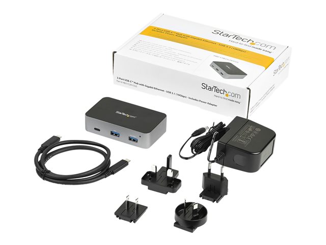 StarTech.com 3 Port USB C 3.1 Gen 2 Hub with Ethernet Adapter, 10Gbps USB Type C to 2x USB-A & 1x USB-C Ports, USB Hub w/ BC 1.2 Phone Fast Charging, Superspeed 10Gbps USB C Hub with GbE - Windows/macOS/Linux - Hub - 1 x USB-C + 2 x USB 3.1 + 1 x 10/100/1000 - desktop - AC 110/240 V - for P/N: PEXUSB321C HB31C2A1CGS