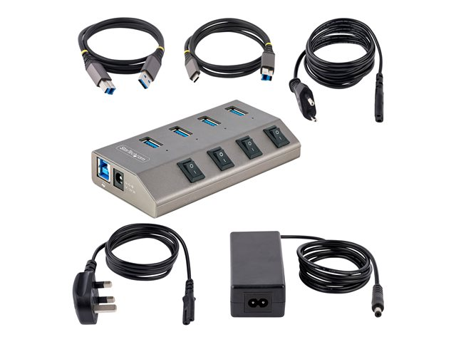 StarTech.com 4-Port Self-Powered USB-C Hub with Individual On/Off Switches, USB 3.0 5Gbps Expansion Hub w/Power Supply, Desktop/Laptop USB-C to USB-A Hub, 4x BC 1.2 (1.5A), USB Type C Hub - USB-C/A Host Cables (5G4AIBS-USB-HUB-EU) - Hub - 4 x USB 3.2 Gen 1 - desktop 5G4AIBS-USB-HUB-EU