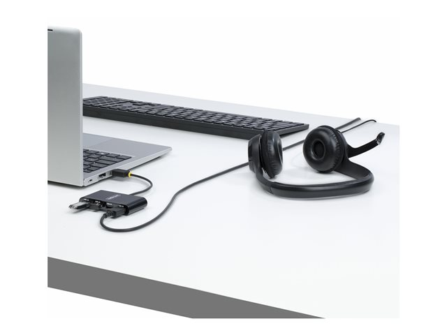 The StarTech.com 4-Port USB 2.0 Hub enhances connectivity with its compact design, making it a perfect travel companion. With the ability to connect up to four USB devices, it allows for efficient data transfer rates of 480 Mbps, ensuring smooth operation for multiple peripherals. This USB hub is bus powered, drawing power directly from the host device, eliminating the need for an external power source, which adds to its portability and convenience. The Plug-and-Play functionality simplifies setup, allowing users to connect devices without complicated installations.