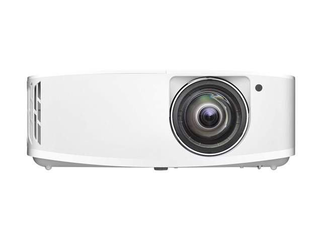 The Optoma 4K400STx projector is designed to enhance any presentation, multimedia experience, or home entertainment setup. With a brightness of 4000 lumens and a contrast ratio of 1000000:1, it delivers vivid, sharp images even in well-lit environments. The Ultra HD 4K resolution ensures that every detail is captured with clarity. Integrated with a 10 W speaker, it provides a robust audio experience, eliminating the need for external speakers. The projector supports a variety of video modes, including 1080i, 1080p, 2160p, and more, making it versatile for different content types. Its comprehensive connectivity options, including HDMI, SPDIF, and USB, allow for easy integration with other devices. The Optoma 4K400STx is not just about performance; it's also built for convenience. With manual focus, short-throw fixed lens, and both horizontal and vertical keystone correction, setting up the projector is straightforward in any room configuration. The lamp's long life cycle, up to 15000 hours in dynamic mode, ensures that the projector will be a long-lasting addition to any setup.