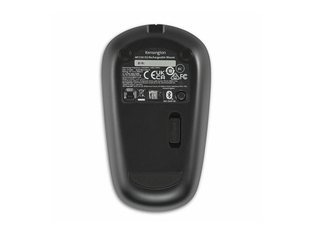 The Kensington MY230 EQ mouse is designed for versatility and comfort, featuring a sleek and eco-friendly construction made from 31% post-consumer recycled plastic. This rechargeable mouse offers wireless connectivity through both 2.4 GHz and Bluetooth 5.0 interfaces, facilitating connections to multiple devices simultaneously. The movement resolution of 1200 DPI ensures precise tracking whether used for work or play, and its right- and left-handed orientation accommodates all users. Customizable buttons allow users to tailor the mouse to personal preferences and workflows, enhancing productivity. The silent switches provide a quiet clicking sound, creating a discreet working environment. An LED indicator offers clear visual feedback on connectivity status, while the included USB-C to USB-A cable and nano receiver enhance convenience. With a wide operating temperature range and the ability to handle high humidity, the MY230 EQ mouse is built to perform in various environments.