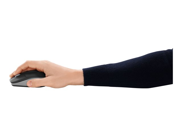 Logitech M190 is a full-size wireless mouse with a comfortable contoured design that follows the natural curve of medium to large hands.