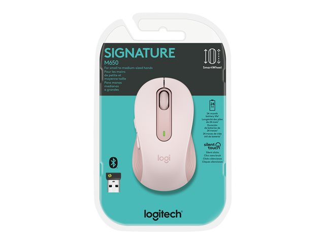 Logitech Signature M650 - Mus - optisk - 5 knapper - trådløs - 2.4 GHz, Bluetooth - Logitech Logi Bolt USB-modtager - rose