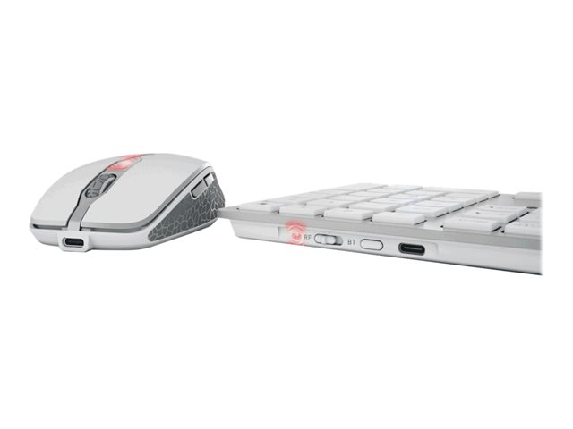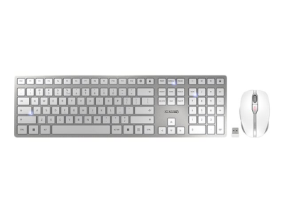 CHERRY DW 9100 SLIM - Sæt med mus og tastatur - trådløs - 2.4 GHz, Bluetooth 4.0 - USA med Euro-symbol - hvid, sølv JD-9100EU-1