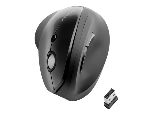 Kensington Pro Fit Ergo Vertical Wireless Mouse - Lodret mus - ergonomisk - højrehåndet - 6 knapper - trådløs - 2.4 GHz - trådløs modtager (USB) - sort