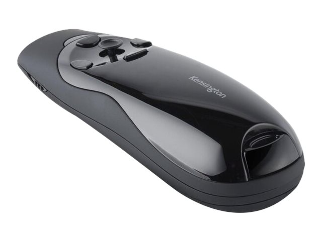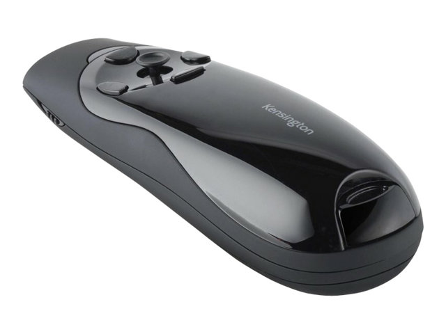 Take control of the room - and your computer's cursor - with the Kensington Presenter Expert red laser presenter with cursor control. The wireless presenter is the one you don't have to think about because everything is intuitive. The Kensington Presenter Expert is just that. Now you can focus on wowing your audience rather than focusing on the operation of your presenter. The simple four-button design makes it easy to navigate your Keynote or PowerPoint presentation. And the red laser helps you make your point from across the room. But sometimes pointing just isn't enough. That's where the Presentation Expert's cursor control comes into play. With a simple flick of a switch, you'll toggle between presentation and cursor control modes. The powerful 2.4 Ghz remote resists interference and lets you control Keynote or PowerPoint from up to 150 feet away. The USB receiver stores inside the presenter so you won't have to worry about losing it. Dark rooms can be a challenge for some wireless presenters. But the Kensington Presenter Expert has backlit buttons so you'll always find the correct button. There's also a low battery indicator to eliminate surprises. And the whole thing packs in a handy carrying pouch.