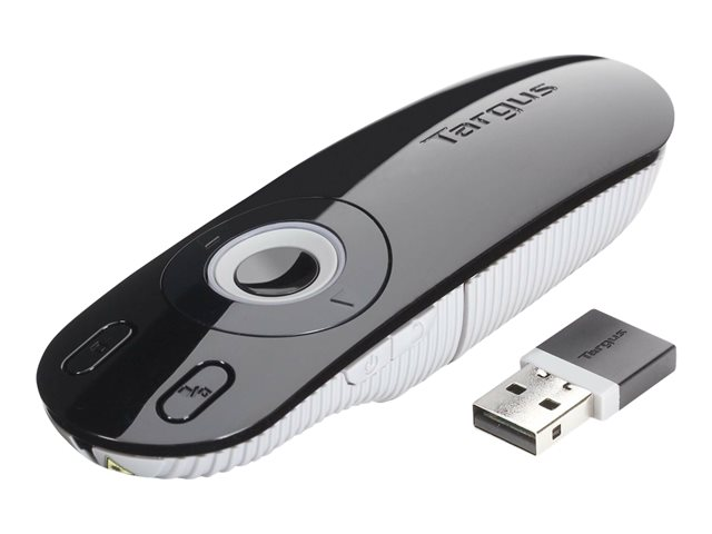 The RF 2.4GHz cordless technology works from up to 15 meters away, providing flexibility while presenting in large conference rooms or classrooms. The mini USB receiver stores neatly inside the remote when it's not in use for added convenience, so it won't get lost or damaged. There's no need to worry about losing power part-way through your presentation. Should your AAA Energizer MAX battery run out, there is a back-up battery compartment where you can store a spare battery. Both stylish and functional, the Targus Presentation Remote is your essential tool in achieving seamless presentation results.