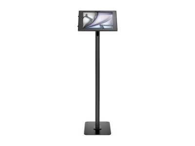 This floor-standing, freestanding tablet stand is lockable for security, featuring a lock slot with a key. The design complies with ADA standards, making it accessible for various environments. Enhance your workspace or display area with this functional tablet stand kit.