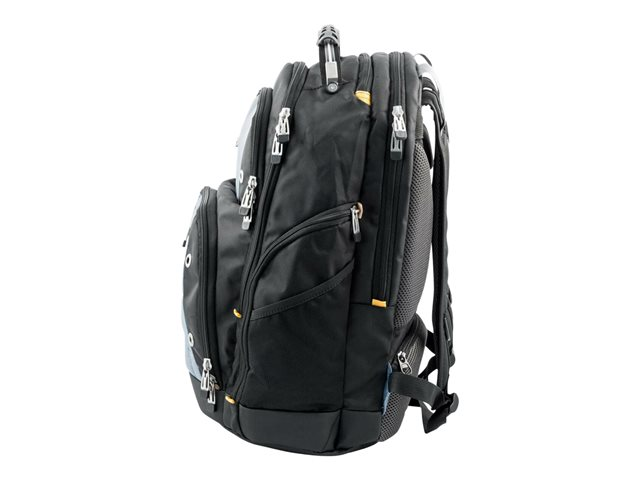 Targus Drifter backpack features a water resistant base, heavy zipper pulls and a reinforced molded grab handle. Heavily padded shoulder straps provide carrying comfort. Thick padding on the back panel features a large hidden zippered compartment which is strategically placed to provide lumbar support for your back.