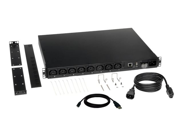 - 208/230/240V 15A maximum capacity (agency de-rated to 12 amps) Switched, Metered and Monitored Power Distribution Unit (PDU) with built-in web / network interface in 1U rackmount form factor
