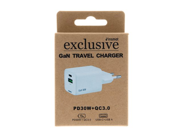 Insmat - Strømforsyningsadapter - 30 Watt - 3 A - PD 3.0, QC 3.0 - 2 output-stikforbindelser (USB, 24 pin USB-C)
