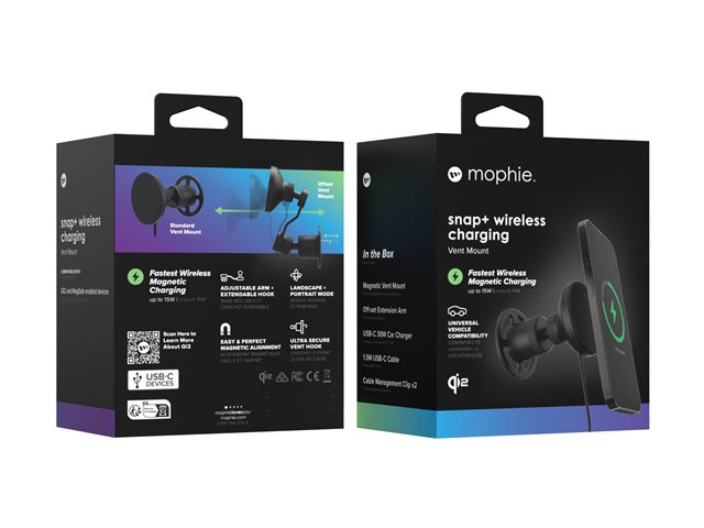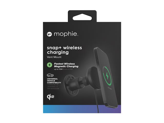 mophie snap+ - Trådløs opladerholder til bil - magnetisk, ventilationsmontering + AC-strømadapter - 15 Watt