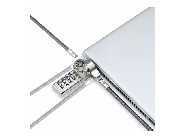 The StarTech.com 10-Pack Dual-Access Laptop Lock is a comprehensive security solution designed to protect a wide array of devices from theft. This 6.5 ft (2 m) security cable lock, compatible with all K-Slot devices, offers flexibility and security for your equipment. Whether you're securing docking stations, monitors, notebooks, or printers, this lock has you covered. The package includes 10 laptop security locks, 10 hook-and-loop straps, 30 lock spacers, and 4 keys, providing everything needed for immediate setup. With the option of using a key or combination lock, it offers dual-access flexibility, making it perfect for environments where multiple users need access. The robust construction of steel and plastic ensures your devices are protected in any setting, making it an ideal choice for educational institutions, offices, and tech labs looking to safeguard their investments.