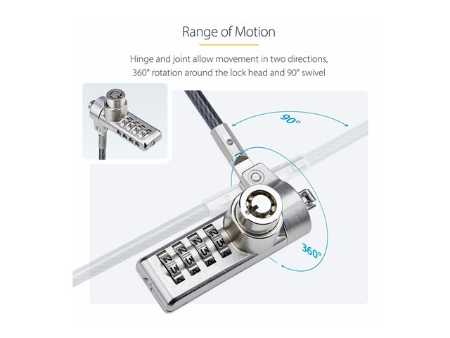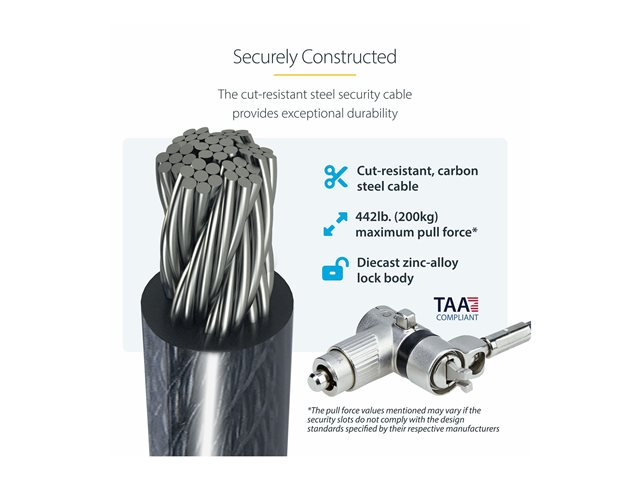 - 6.5 ft (2 m) steel cable offers flexibility in device placement while ensuring security