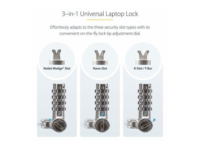 StarTech.com 25-Pack Laptop Lock, Compatible w/Noble Wedge/Nano/K-Slot - Sikkerhedskabelslås - sort, sølv - 2 m - TAA-kompatibel (pakke med 25)