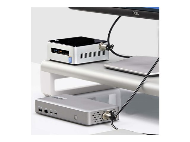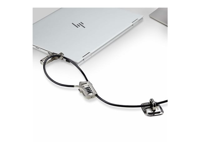 The StarTech.com Laptop/Desktop & Peripheral Lock Kit is designed to provide a reliable solution for securing various devices, including notebooks, monitors, desktops, and projectors. With a 9.8 ft (3 m) cable, this workstation locking kit deters theft while ensuring your equipment remains safe during use. The package includes a hook-and-loop fastening strap, a 4 digit combination lock head, three permanent lock heads, and twelve spacers, making it adaptable for different devices and setups. Constructed from durable plastic and steel, the kit meets RoHS compliance and is TAA-compliant.