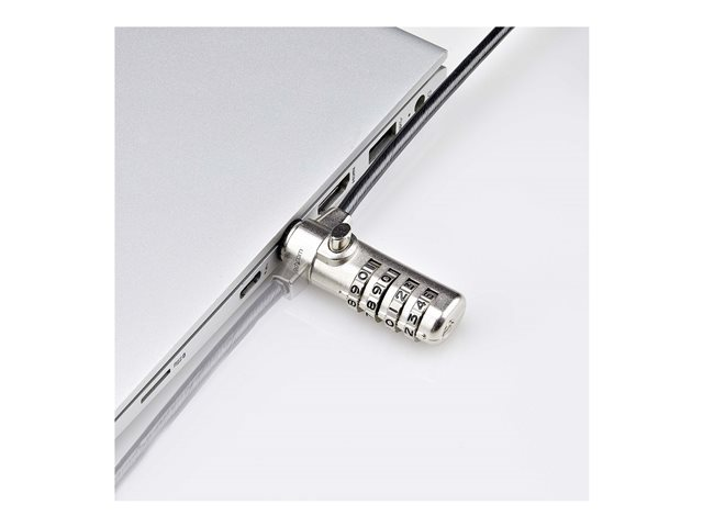 The Nano Slot Compatible 6.6ft (2m) Cable Lock from StarTech.com offers a robust solution for laptop security. This cable lock features anti-theft protection, ensuring that valuable devices are safeguarded against unauthorized access. With a combination lock method and a Kensington Nano Slot design, it provides peace of mind for users seeking to secure their laptops effectively.