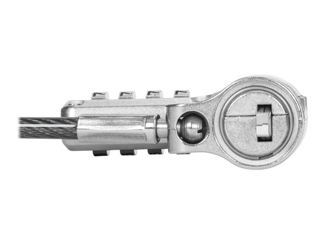 The Targus DEFCON security cable lock is a comprehensive security solution designed to protect a wide array of devices. Its 360° head rotation and cut-resistant, sleeved cable offer both flexibility and strength, ensuring your devices are safeguarded against theft. Made from durable galvanized steel, it stands up to cutting attempts, providing peace of mind in any setting. Whether for desktops, docking stations, monitors, or notebooks, its universal serialized combination lock, along with T-Bar, nano, and wedge lock types, offers versatile compatibility and protection. Secure your devices with confidence, knowing they are protected by the Targus DEFCON security cable lock.